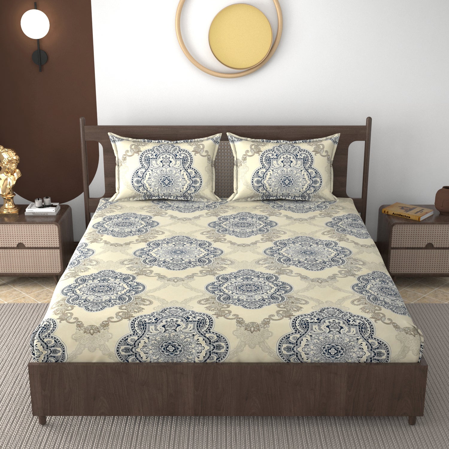 Transform your bedroom into a haven of comfort and style with our premium, perfectly sized, superior-quality cotton bedsheet set at a reasonable price. Perfect for personal indulgence or as a thoughtful gift, this set is designed to bring unparalleled comfort and timeless style to any bedroom.