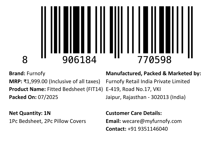 - 140 GSM Premium Fabric: Made from high-quality 140 GSM fabric, this fitted bedsheet is soft, stretchable, and durable, providing lasting comfort and a smooth feel throughout the night.