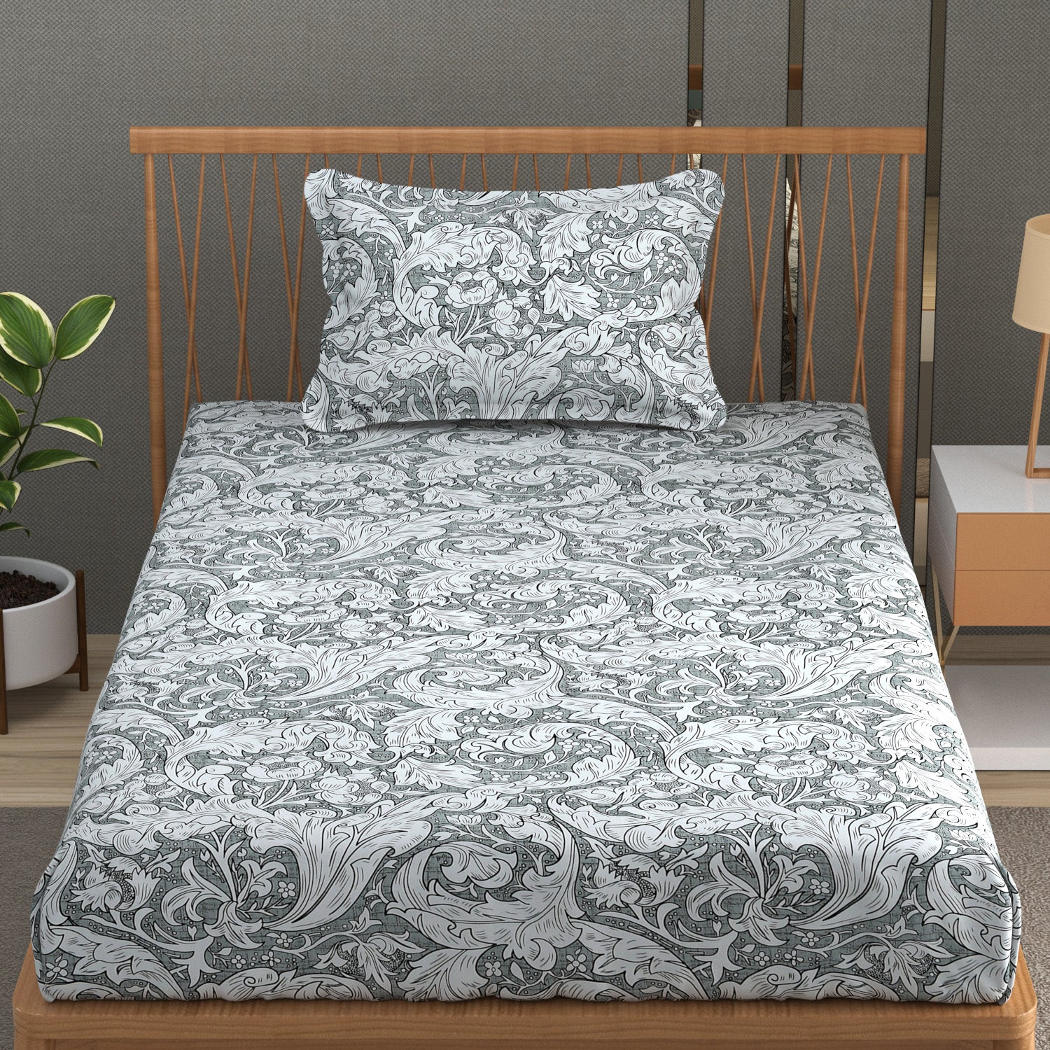 Furnofy 140 GSM Flat Single Bedsheet (60x90 inches) with 1 Pillow Cover (18x 27 inches) -Combination Of Light White And Grey.
