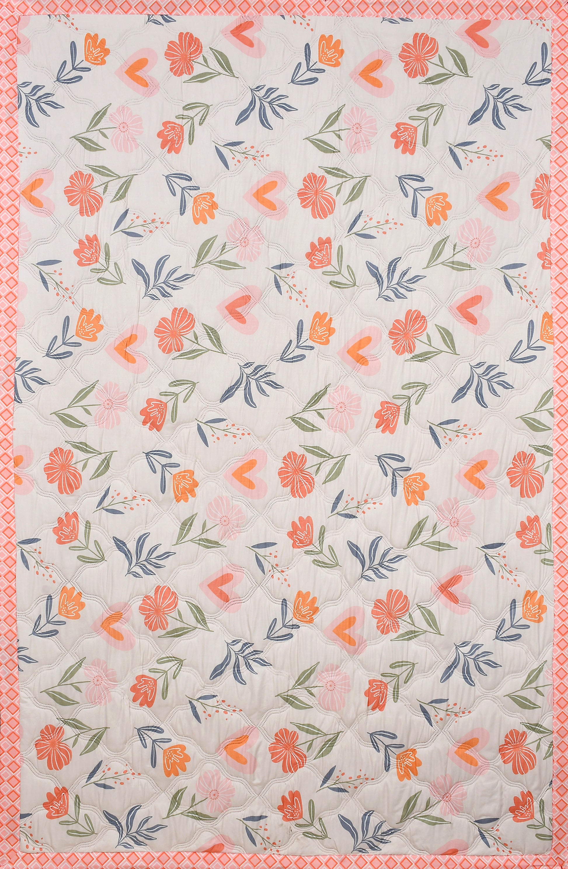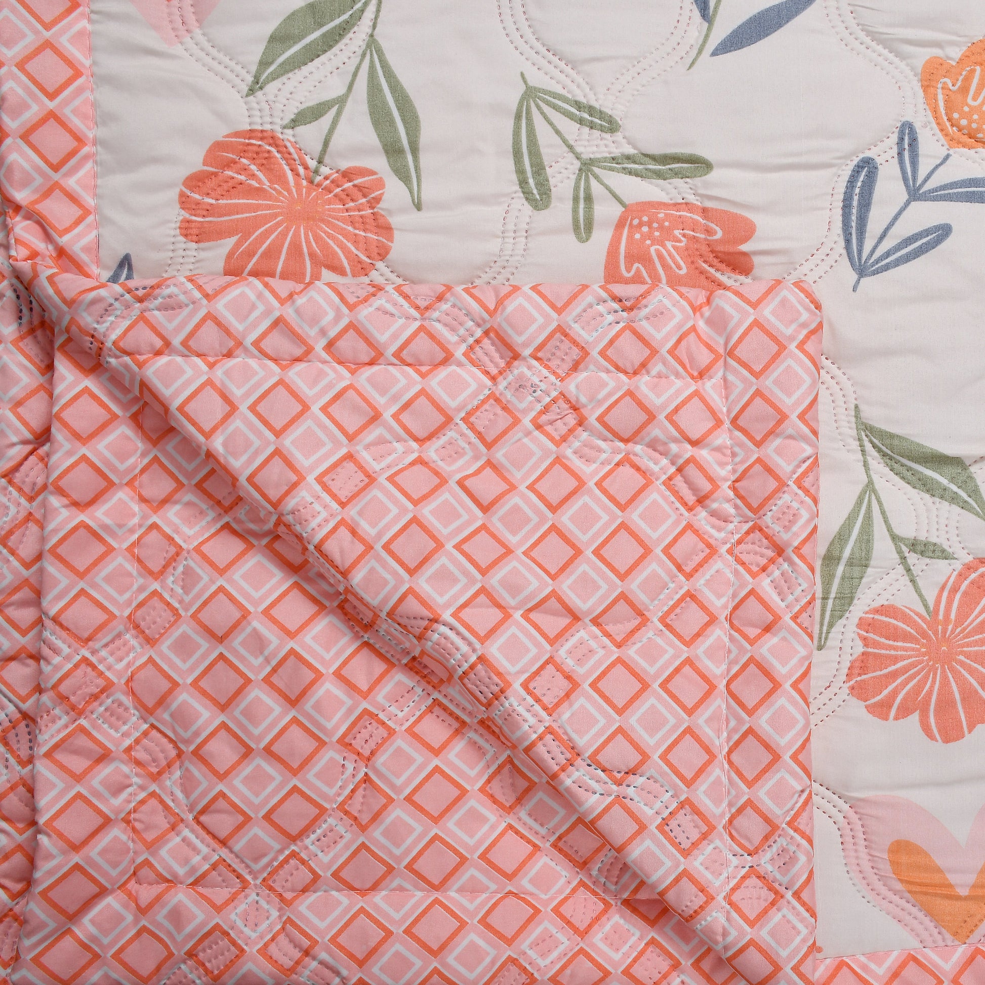 Furnofy 200 GSM Premium Single Bed Reversible Comforter/Quilt (150x220 cm) - Microfiber, Pack of 1, Floral White, Pink