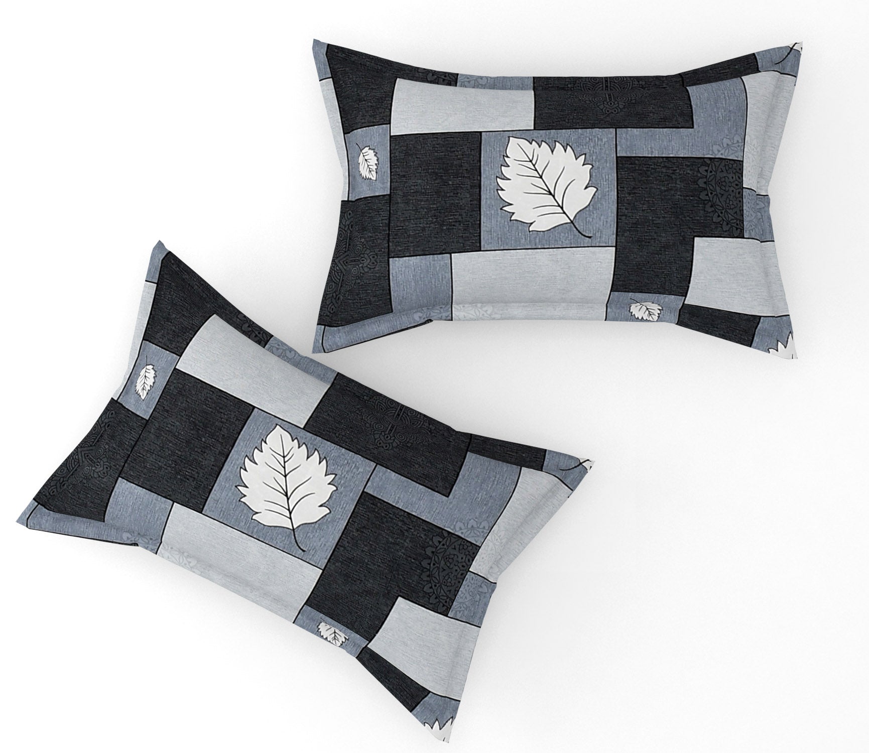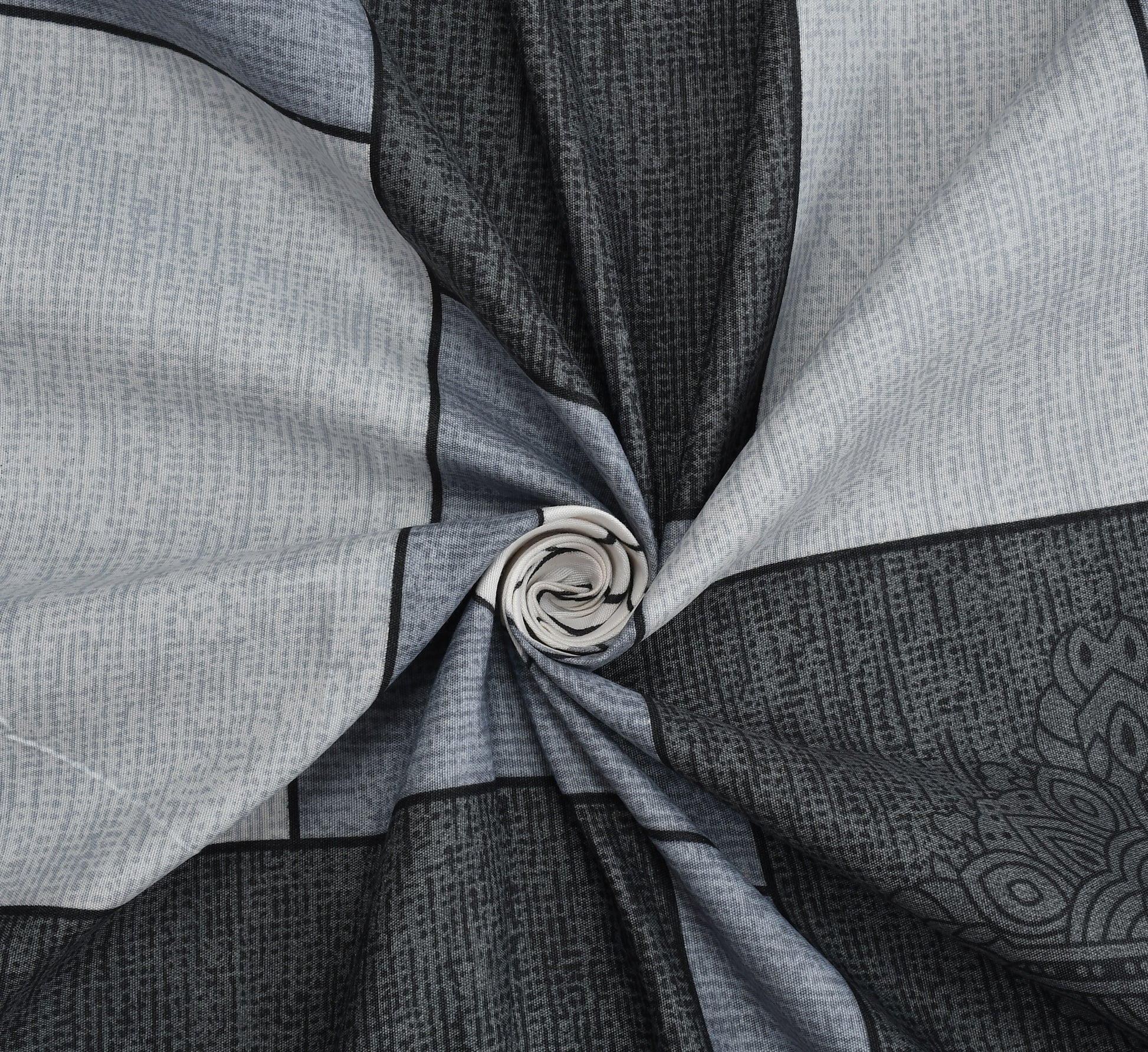 Furnofy Premium Printed Double Bedsheet (90x100 Inches) with 2 Pillow Covers (Flat, Geometric) - Grey & Black